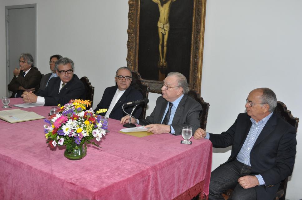 O Padre Ivern fala algumas palavras durante a cerimônia de posse do Professor Sérgio Bruni no cargo de Vice-reitor de Desenvolvimento, que até então o próprio padre ocupava.