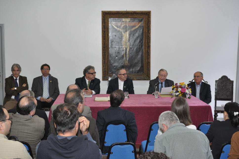 O Padre Ivern fala algumas palavras durante a cerimônia de posse do Professor Sérgio Bruni no cargo de Vice-reitor para Assuntos de Desenvolvimento, que até então o próprio padre ocupava.