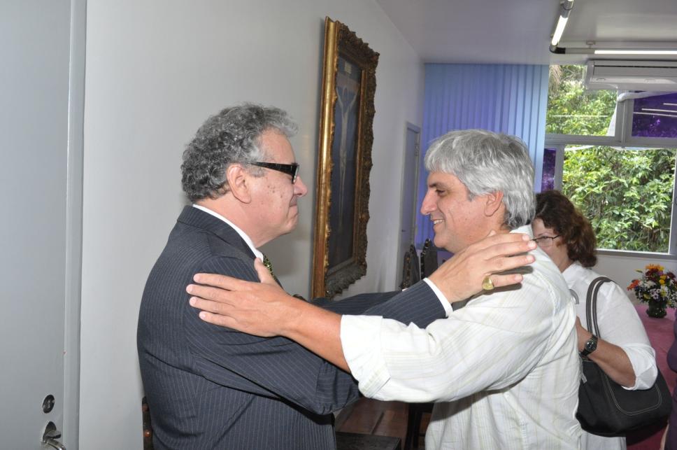 O Professor Sérgio Bruni, empossado no cargo de Vice-reitor de Desenvolvimento, recebe os cumprimentos dos presentes.