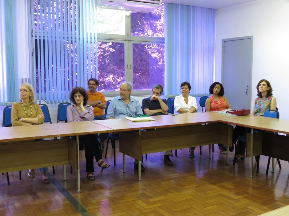 Professores da Filosofia e de outros departamentos da PUC-Rio assistem à cerimônia de posse da Professora Vera Cristina Bueno no cargo de diretora do Departamento.