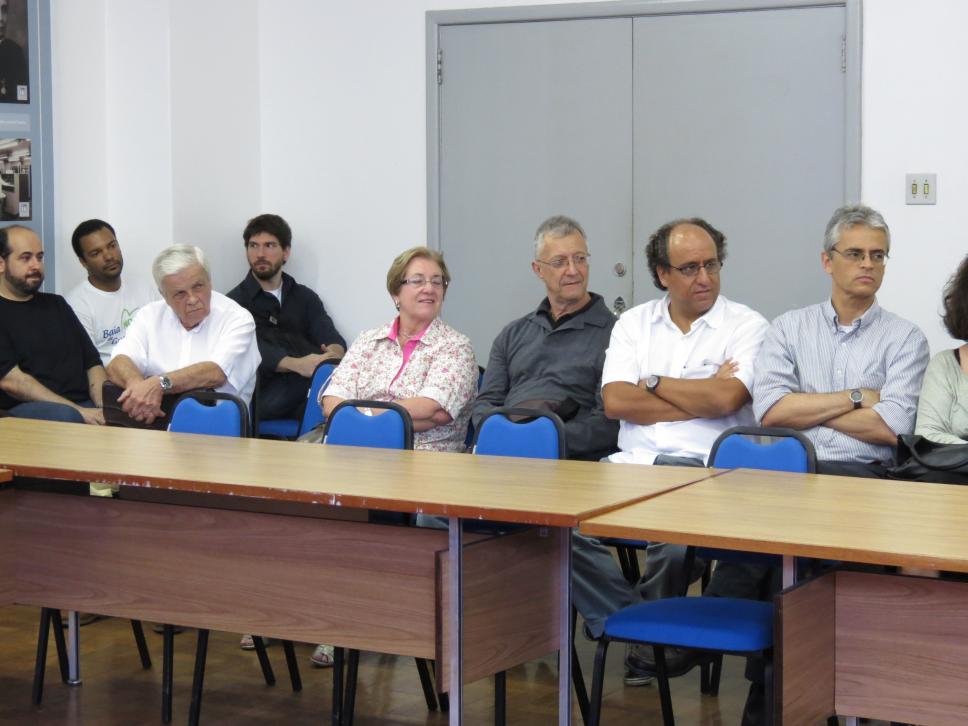 Professores da Filosofia e de outros departamentos da PUC-Rio assistem à cerimônia de posse da Professora Vera Cristina Bueno no cargo de diretora do Departamento.