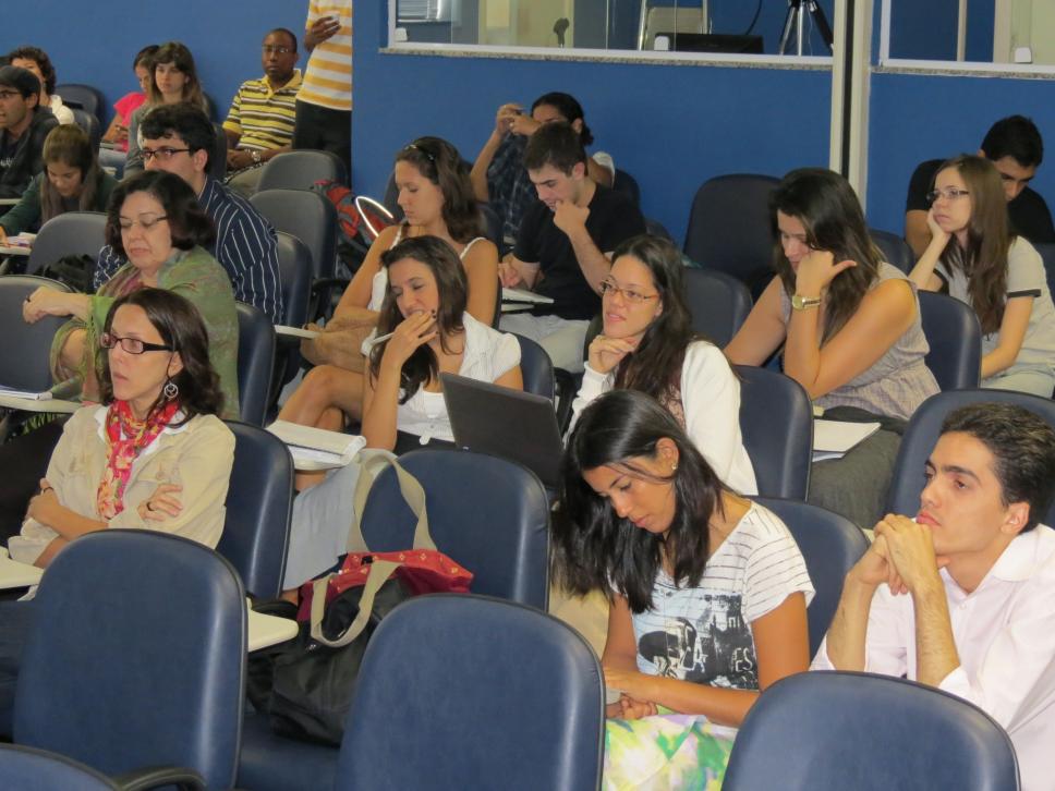 Seminário de Reflexão e Memória da Cultura Afrobrasileira', realizado na PUC-Rio em novembro de 2011. A plateia assiste a mesa 'Territórios e territorialidades negras', coordenada e mediada pela Professora Ynaê Lopes dos Santos e formada pelos professores Maurício Arruti, do Departamento de Educação, Job Eloísio, do Departemento de Direito, e Adrelino Campos.