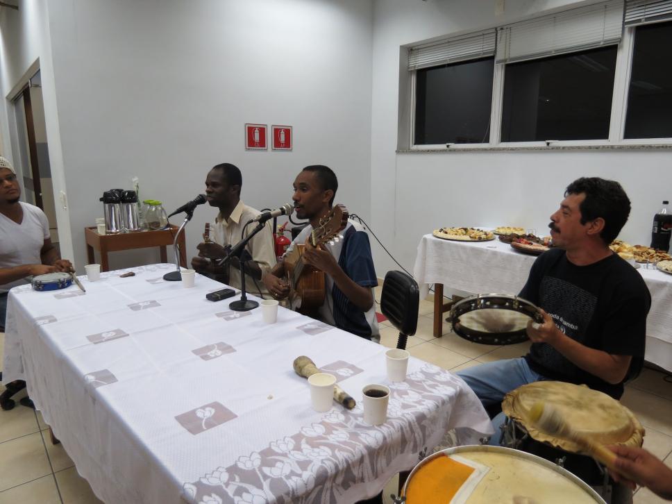 Coquetel e apresentação musical do grupo Roda de Samba da Pedra do Sal no encerramento do 'Seminário de Reflexão e Memória da Cultura Afrobrasileira', realizado em novembro de 2011 na PUC-Rio.