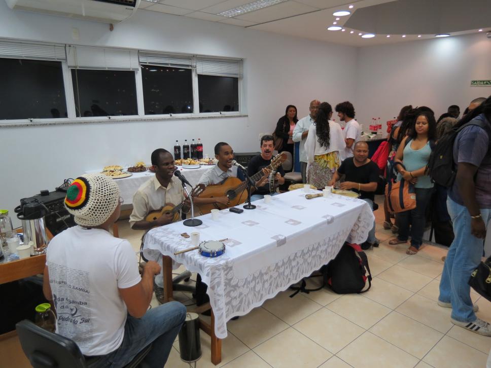 Coquetel e apresentação musical do grupo Roda de Samba da Pedra do Sal no encerramento do 'Seminário de Reflexão e Memória da Cultura Afrobrasileira', realizado em novembro de 2011 na PUC-Rio.