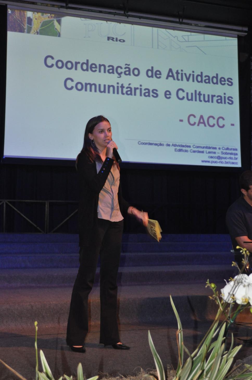 A Coordenação de Atividades Comunitárias e Culturais da vice-reitoria para assuntos comunitários faz sua apresentação e recebe os calouros de graduação de 2011.2 no 'Meu Primeiro Dia na PUC'.