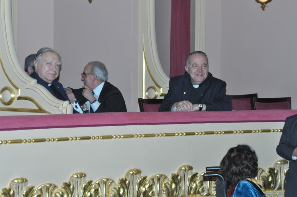 O reitor Padre Josafá, o vice-reitor Padre Ivern e outros representantes da administração central da PUC-Rio assistem ao concerto em homenagem ao Padre Hortal pelos 15 em que esteve à frente da reitoria da Universidade.