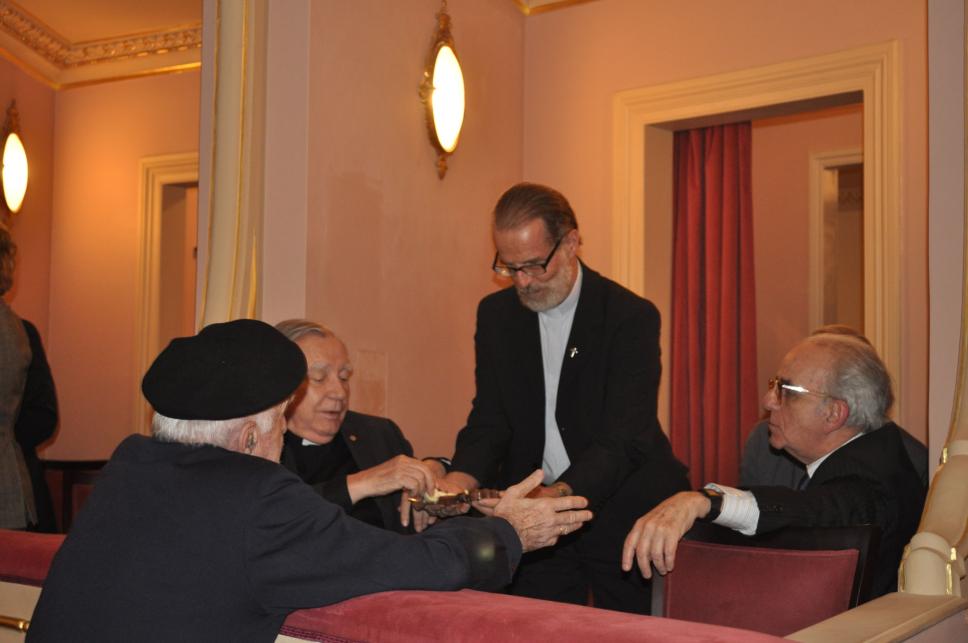 No Theatro Municipal, professores e representantes da administração central da PUC-Rio participam da homenagem ao Padre Hortal, pelos 15 anos em que esteve à frente da reitoria da Universidade. As apresentações foram realizadas pela Orquestra Sinfônica Brasileira, sob a regência do maestro Roberto Minczuk, e pelo pianista Nelson Freire
