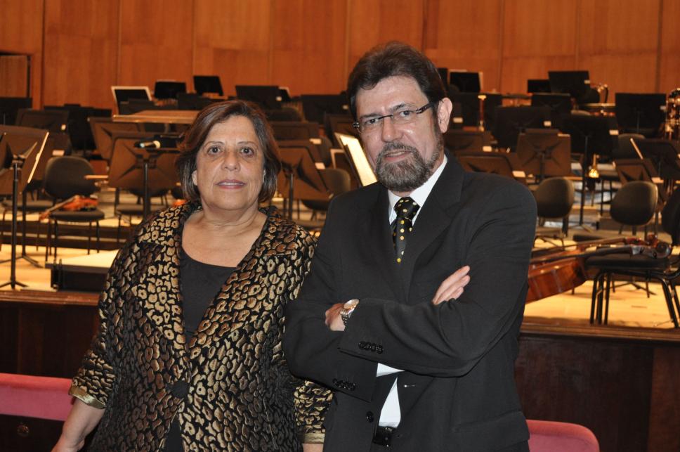 No Theatro Municipal, a Professora Marlene Pontes e o Professor Luiz da Silva Mello, na noite do concerto em homenagem ao Padre Hortal pelos 15 anos em que esteve à frente da reitoria da PUC-Rio.