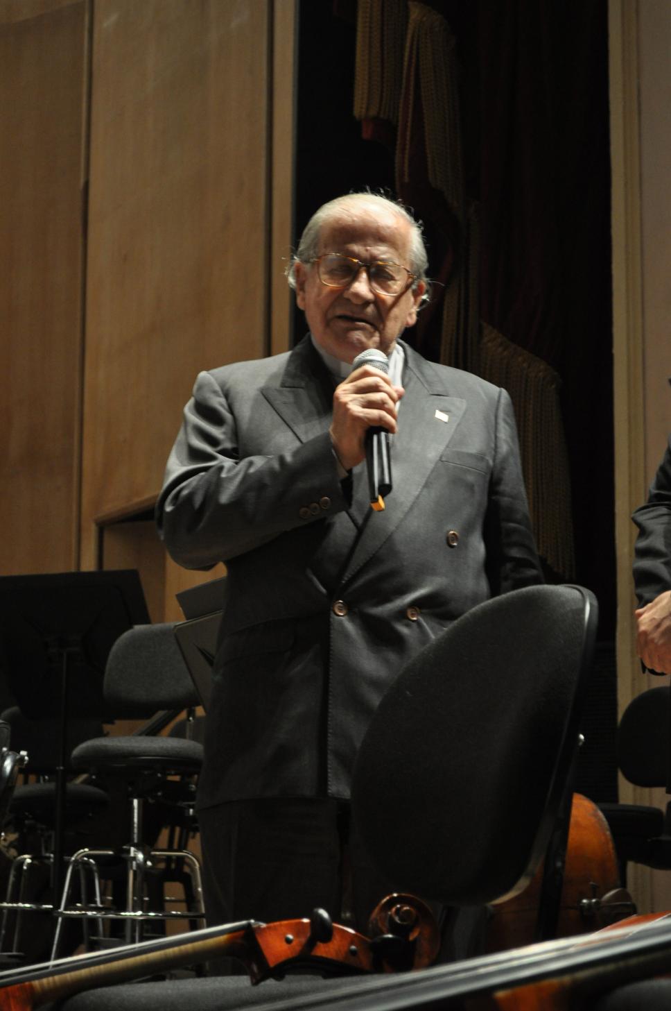 O Padre Hortal, homenageado no Theatro Municipal pelos 15 anos à frente da reitoria da PUC-Rio. Apresentaram-se a Orquestra Sinfônica Brasileira, sob a regência do maestro Roberto Minczuk, e o pianista Nelson Freire
