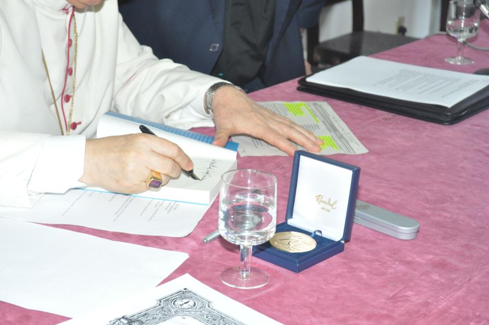 O Núncio Apostólico no Brasil, Dom Lorenzo Baldisseri, autografa seu livro 'Diplomacia Pontifícia - Acordo Brasil-Santa Sé - Intervenções', lançado aquele dia, na PUC-Rio