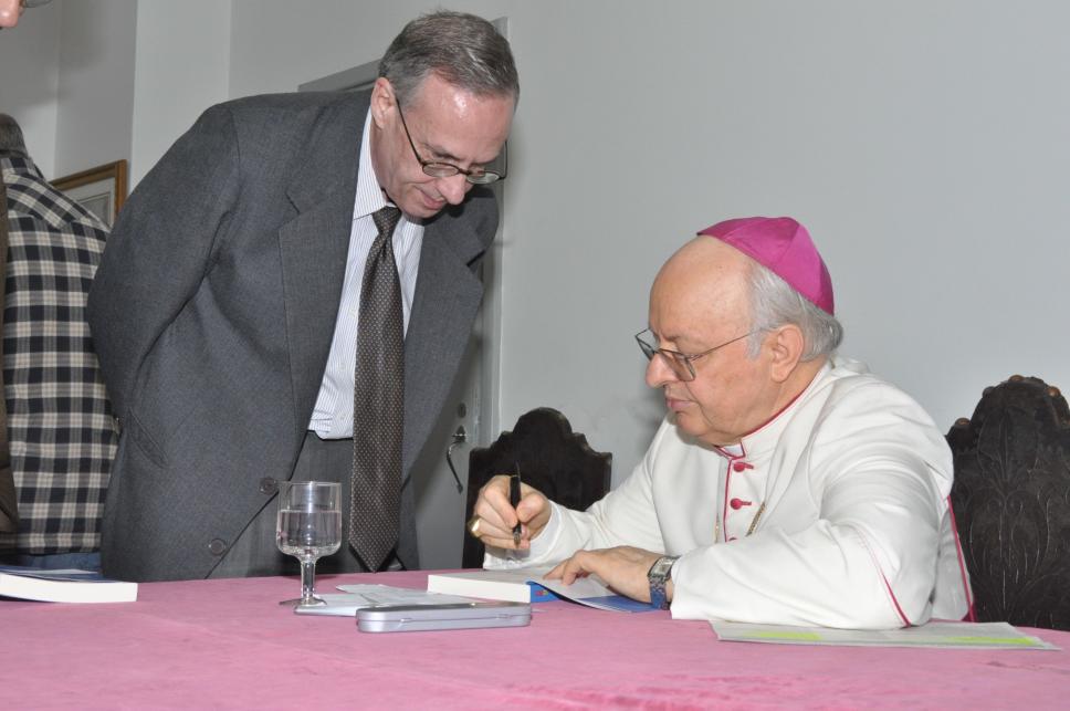 O Núncio Apostólico no Brasil, Dom Lorenzo Baldisseri, autografa seu livro 'Diplomacia Pontifícia - Acordo Brasil-Santa Sé - Intervenções', lançado aquele dia, na PUC-Rio