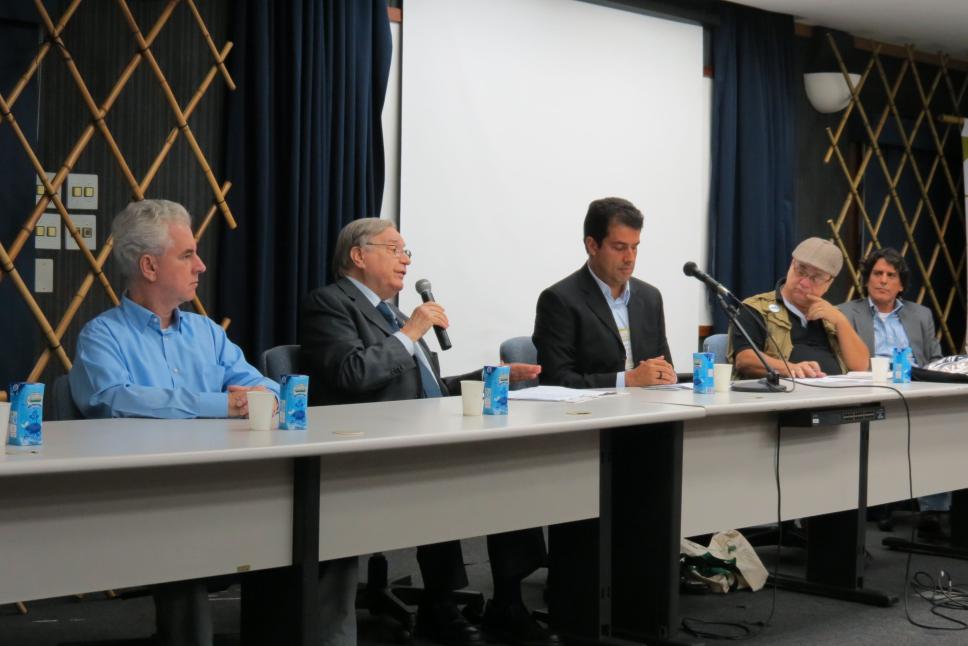 prof. Leonel Azevedo de Aguiar (COM); vice-reitor pe. Francisco Ivern Simó, S.J.; prof. André Trigueiro (COM); Vilmar Sidnei Demamam Berna; prof. Luiz Felipe Guanaes Rego (GEO - NIMA)