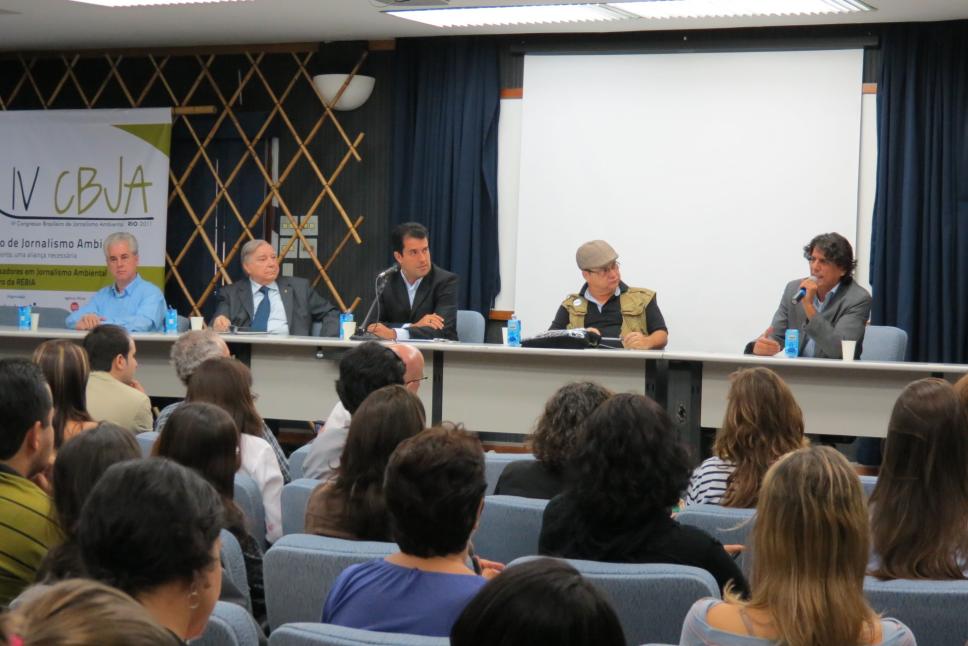 (da direita para esquerda) prof. Luiz Felipe Guanaes Rego (GEO - NIMA); Vilmar Sidnei Demamam Berna; prof. André Trigueiro (COM); vice-reitor pe. Francisco Ivern Simó, S.J.; prof. Leonel Azevedo de Aguiar (COM).