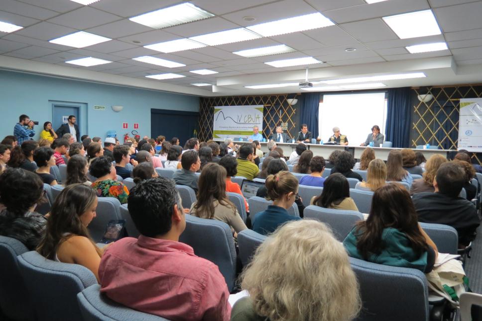 A plateia acompanha a abertura do evento.
