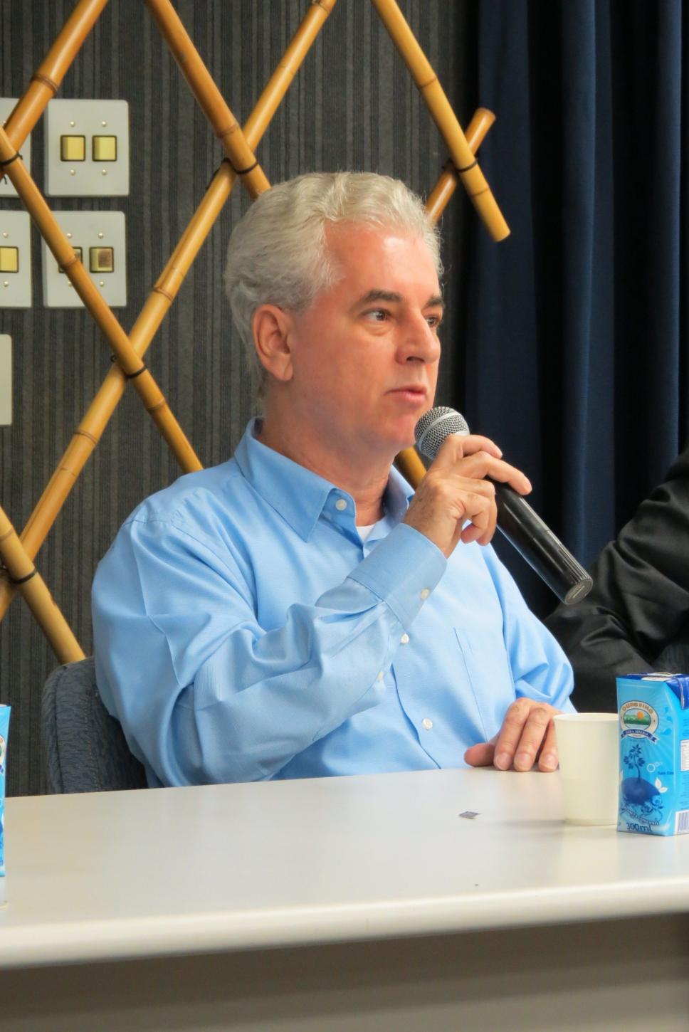 O Professor Leonel Azevedo de Aguiar, coordenador do Departamento de Comunicação Social da PUC-Rio, fala na abertura do evento.