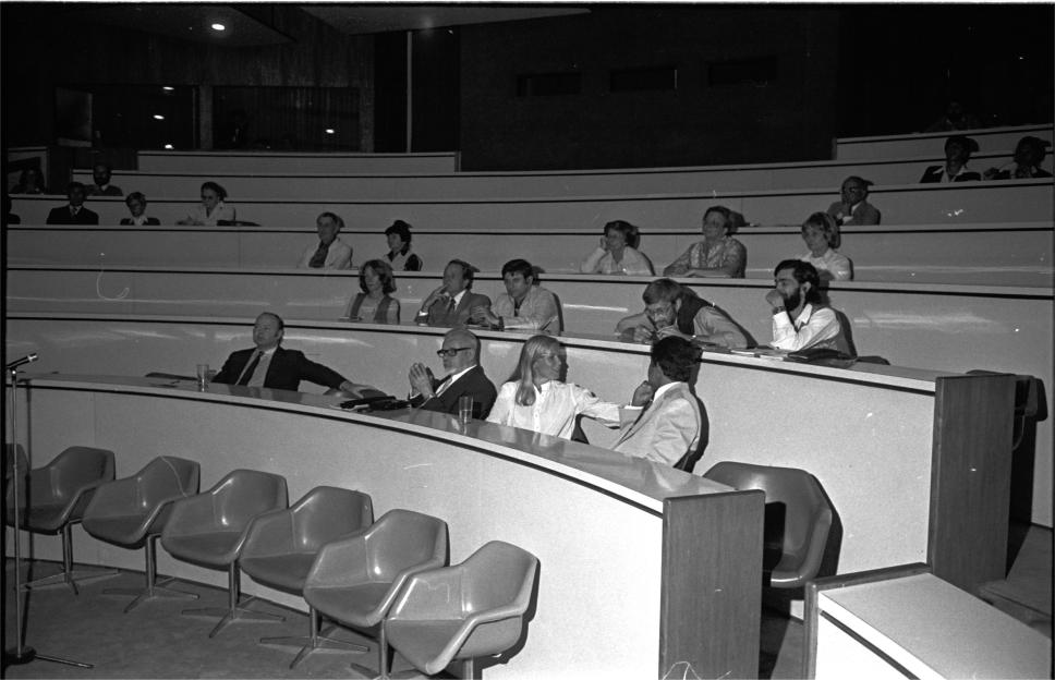 Plateia da conferência A Literatura Alemã e a Brasileira, abertura do 1º Encontro Latino-Americano de Professores de Alemão. A mesa-redonda contou com a participação de escritores alemães e brasileiros.