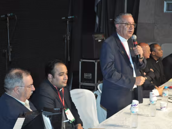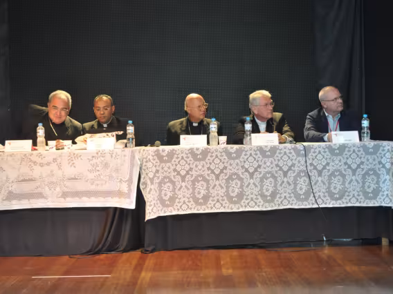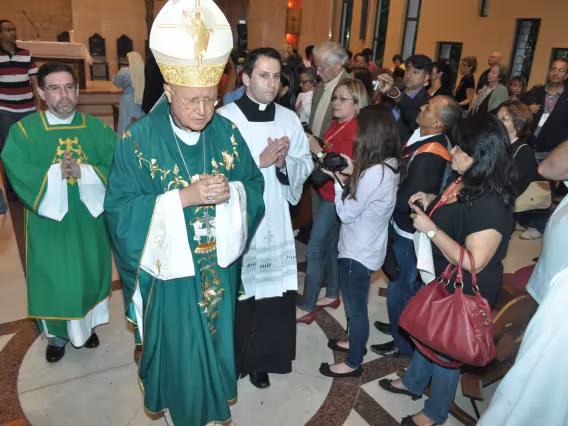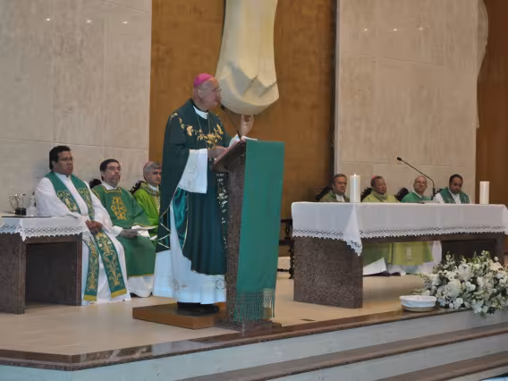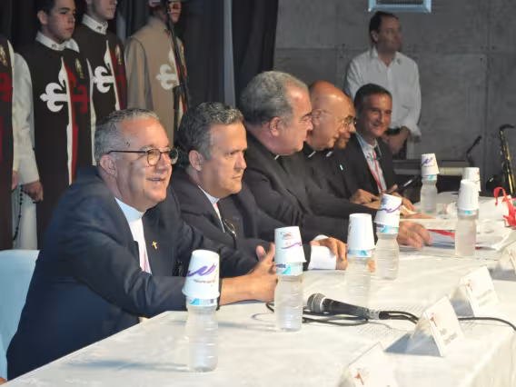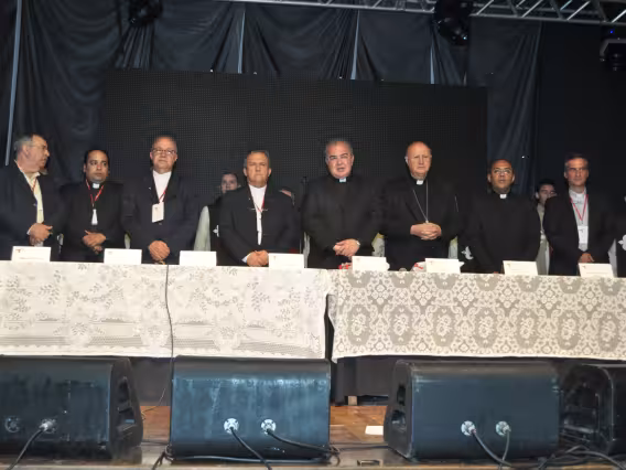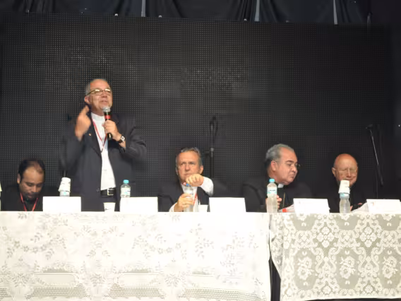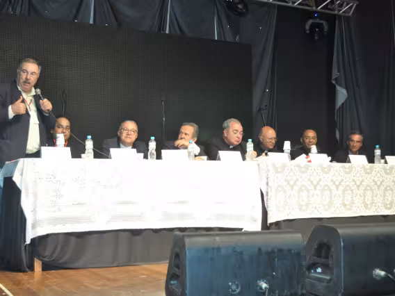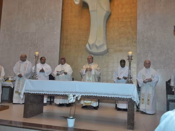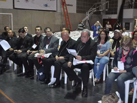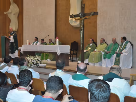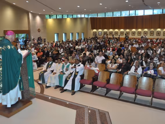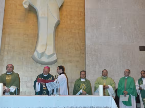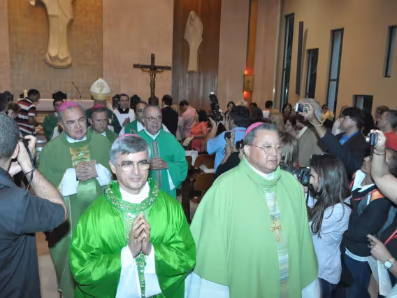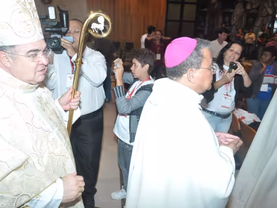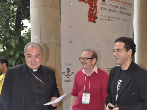 pv0058_009 | 17/7/2011 | O Presidente do Conselho Pontifício de Comunicação Social, Dom Claudio Maria Celli, celebra a missa de abertura do 7° MUTICOM - Mutirão Brasileiro de Comunicação. A cerimônia foi concelebrada pelo arcebispo do Rio de Janeiro, Dom Orani João Tempesta, O. Cist., e pelo presidente da Comissão Episcopal de Comunicação da Conferência Nacional dos Bispos do Brasil (CNBB) e arcebispo de Campo Grande, Dom Dimas Lara Barbosa. |