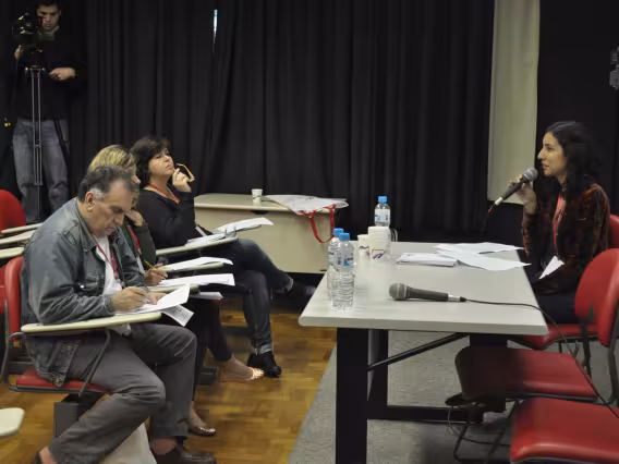 pv0058_114 | 19/7/2011 | A Professora Moira Toledo toma parte no Painel 'Documentário, ficção e vida cotidiana', no 7° MUTICOM - Mutirão Brasileiro de Comunicação. |