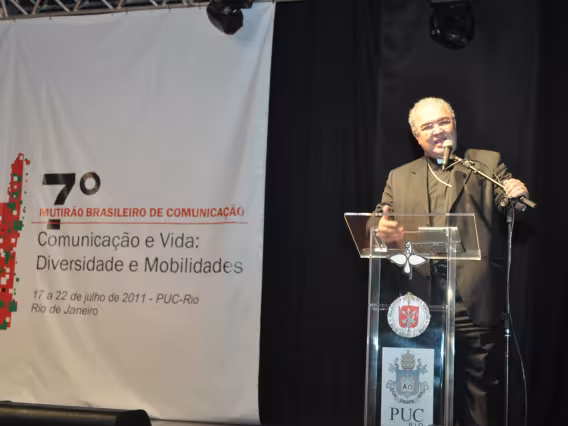 pv0058_010 | 17/7/2011 | O Presidente do Conselho Pontifício de Comunicação Social, Dom Claudio Maria Celli, celebra a missa de abertura do 7° MUTICOM - Mutirão Brasileiro de Comunicação. A cerimônia foi concelebrada pelo arcebispo do Rio de Janeiro, Dom Orani João Tempesta, O. Cist., e pelo presidente da Comissão Episcopal de Comunicação da Conferência Nacional dos Bispos do Brasil (CNBB) e arcebispo de Campo Grande, Dom Dimas Lara Barbosa. |
