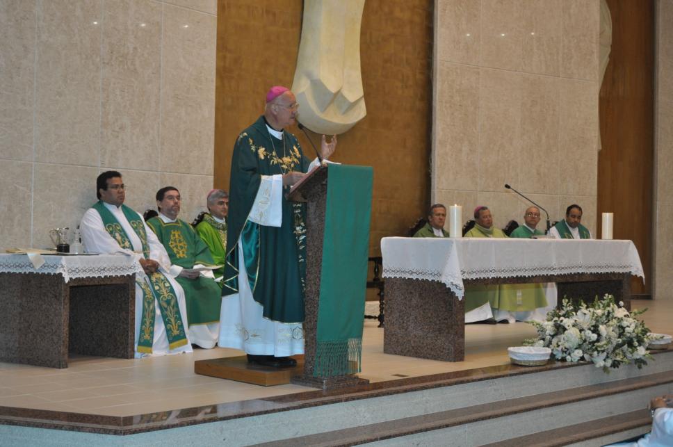 O Presidente do Conselho Pontifício de Comunicação Social, Dom Claudio Maria Celli, celebra a missa de abertura do 7° MUTICOM - Mutirão Brasileiro de Comunicação.