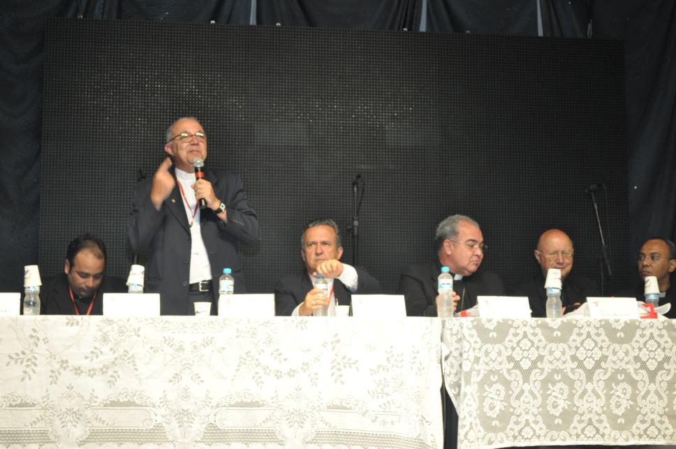 pe. Omar Raposo de Sousa; reitor prof. pe. Josafá Carlos de Siqueira, S.J.; Dom Dimas Lara Barbosa; Arcebispo Dom Orani João Tempesta, O. Cist.; Dom Cláudio Maria Celli; pe. Marcos William Bernardo