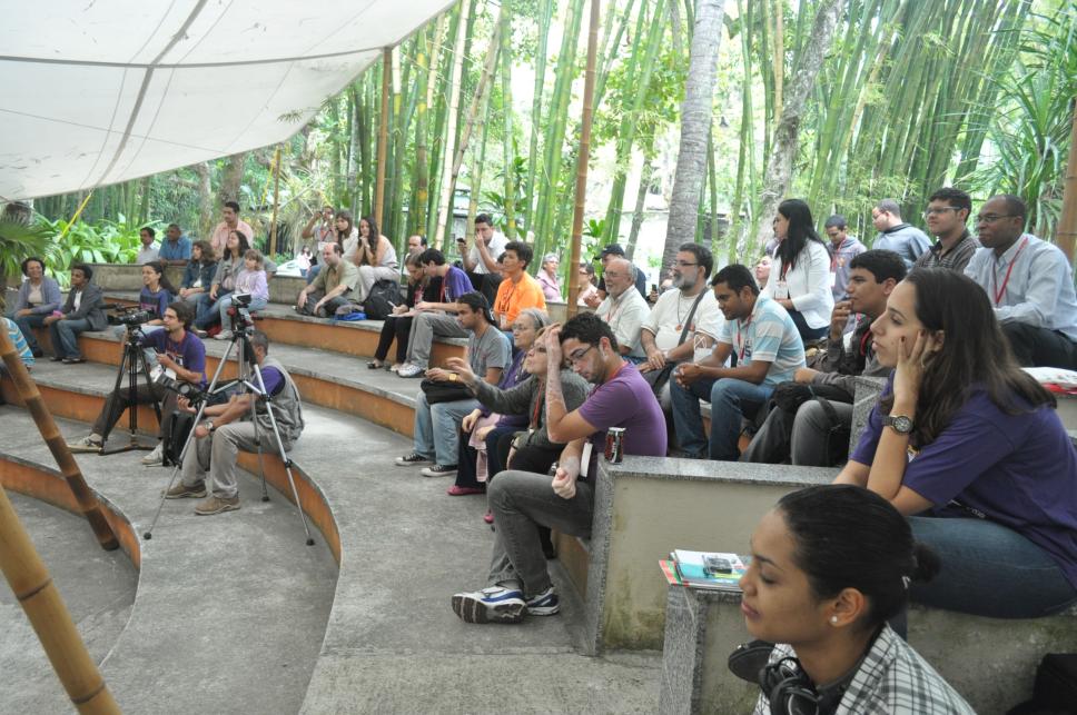 O público assiste às apresentações musicais da jornada de atividades culturais do 7° MUTICOM - Mutirão Brasileiro de Comunicação.