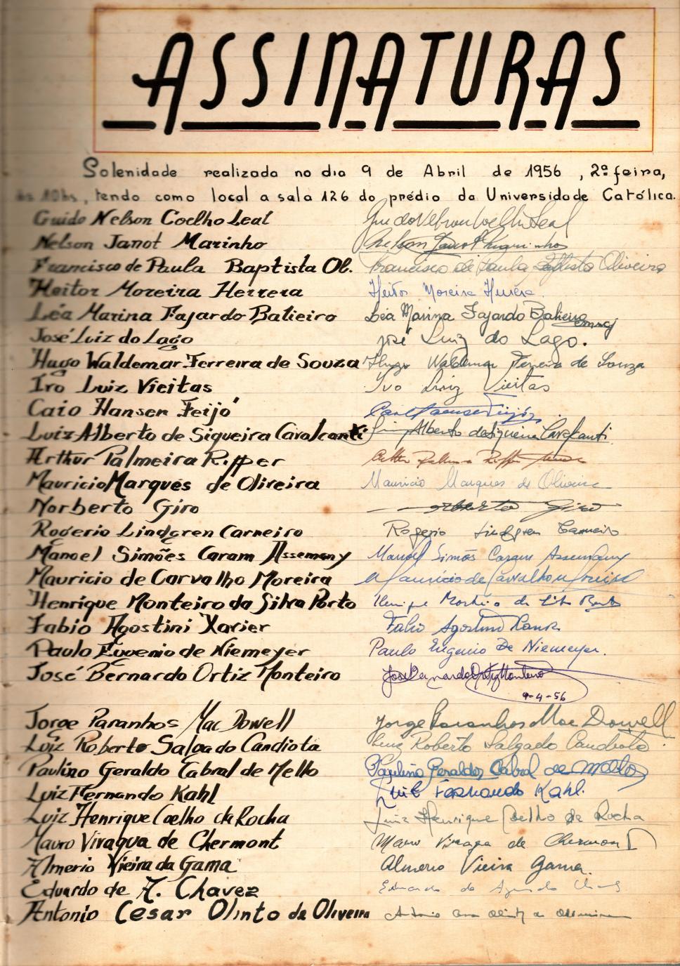 Assinaturas que subscrevem o Código de Honra da EPUC - Escola Politécnica da Pontifícia Universidade Católica