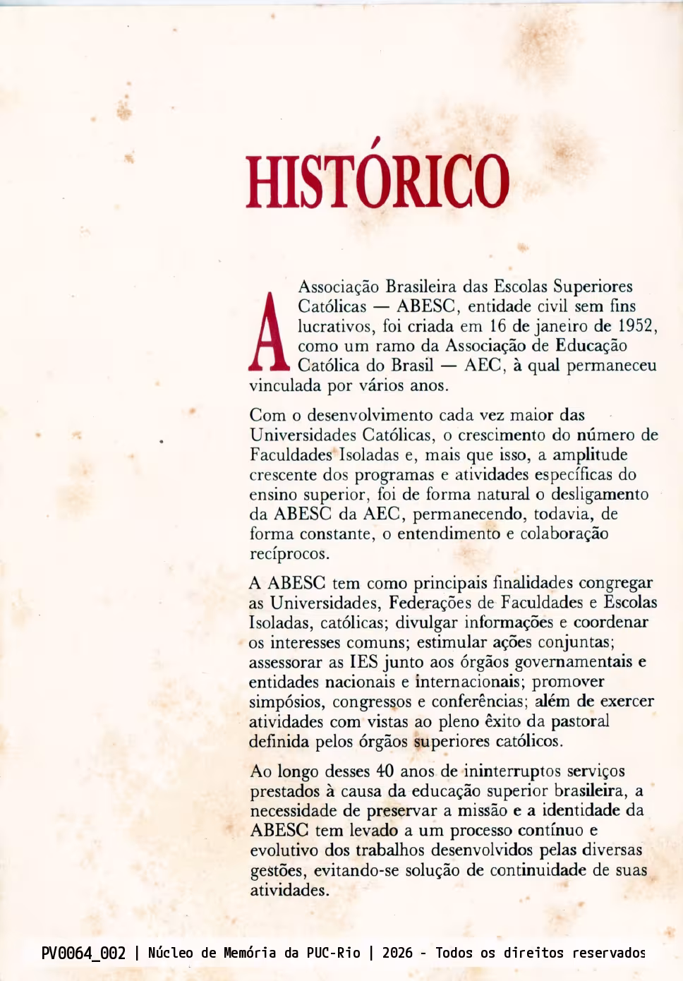 Breve histórico da ABESC (Associação Brasileira de Escolas Superiores Católicas).