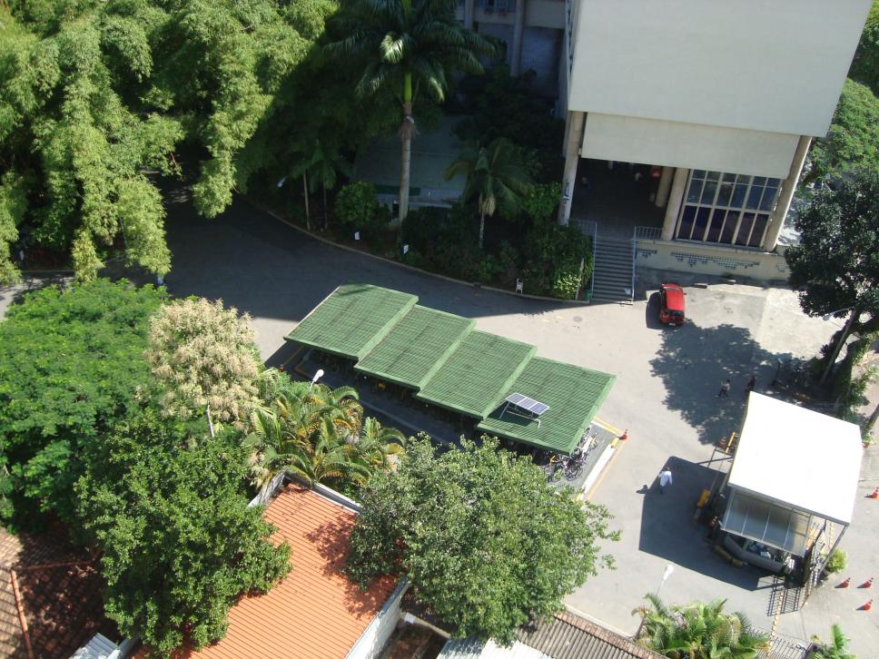 Imagem a partir do alto. Vê-se o bicicletário, o prédio Frings e o portão principal.