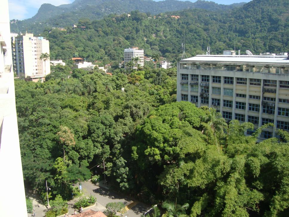 Imagem a partir do alto. Vê-se o bosque, o prédio Kennedy e a mata da Gávea.