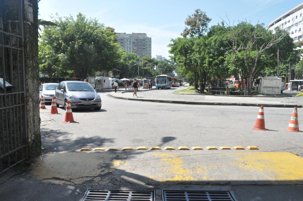 Terminal de ônibus localizado diante da entrada do campus Gávea.