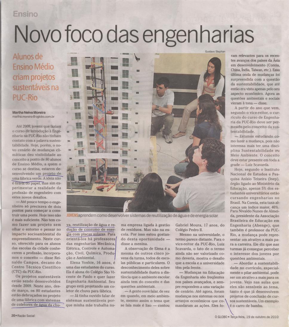Artigo do jornal O Globo, 'Novo foco das engenharias'
