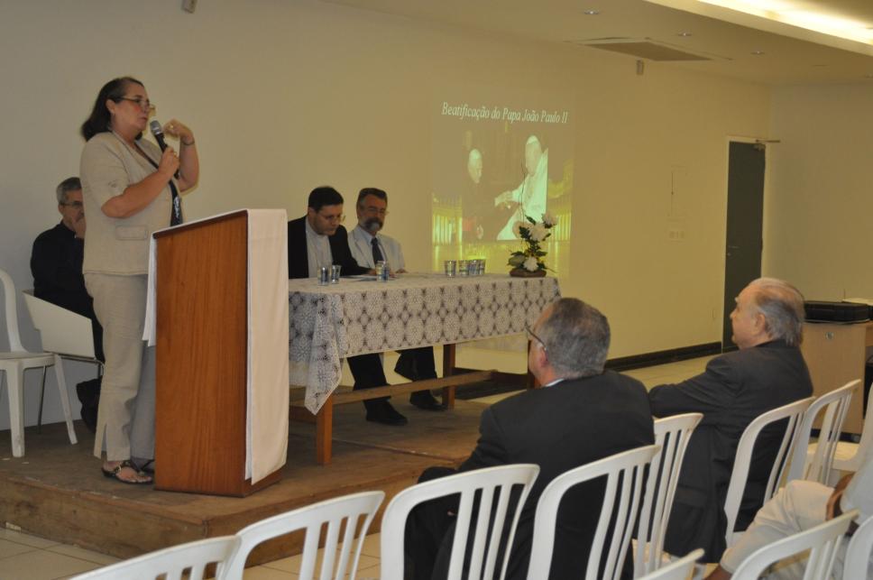 A profa. Maria Clara Lucchetti Bingemer palestra durante homenagem pela Beatificação do Papa João Paulo II.