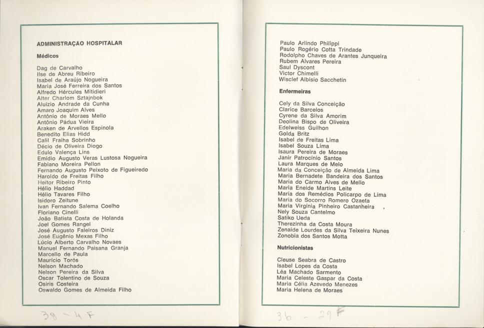 Páginas internas do folheto com a lista de alunos dos cursos em dezembro de 1971 do Centro de Ciências Médicas e Biológicas.