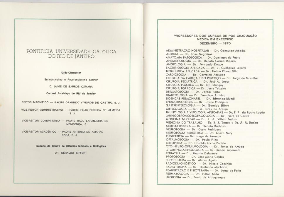 Páginas internas do folheto com organograma do Centro de Ciências Médicas e Biológicas e nomes dos professores