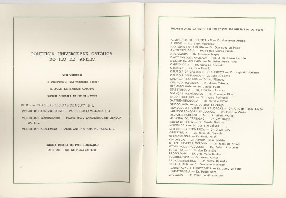 Páginas internas do folheto do organograma do Centro de Ciências Médicas e Biológicas e nomes dos professores