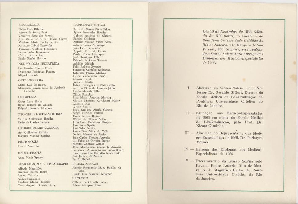 Páginas internas do folheto do organograma do Centro de Ciências Médicas e Biológicas e nomes dos alunos