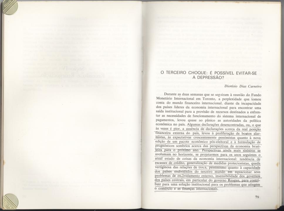 Artigo do prof. Dionísio Dias Carneiro no livro Dívida Externa, Recessão e Ajuste Estrutural - O Brasil diante da Crise.