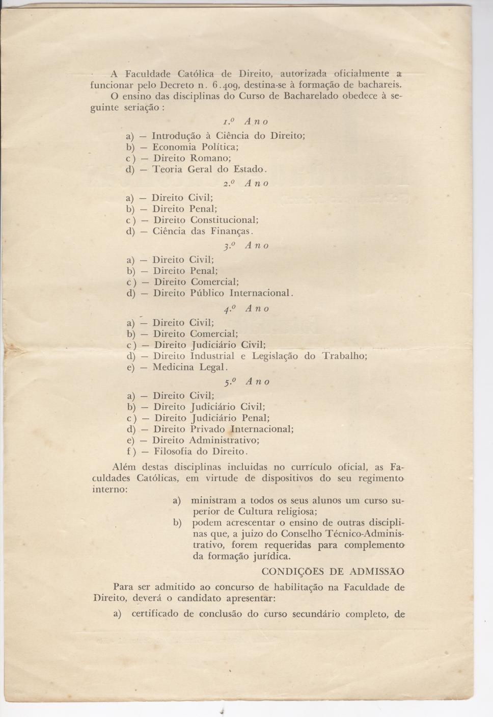 Segunda página do folheto sobre os cursos da Faculdade de Direito, ainda localizada na rua São Clemente.
