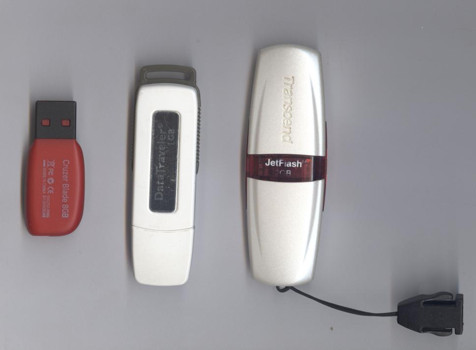 Pen-drives com variadas capacidades de armazenamento de informações.