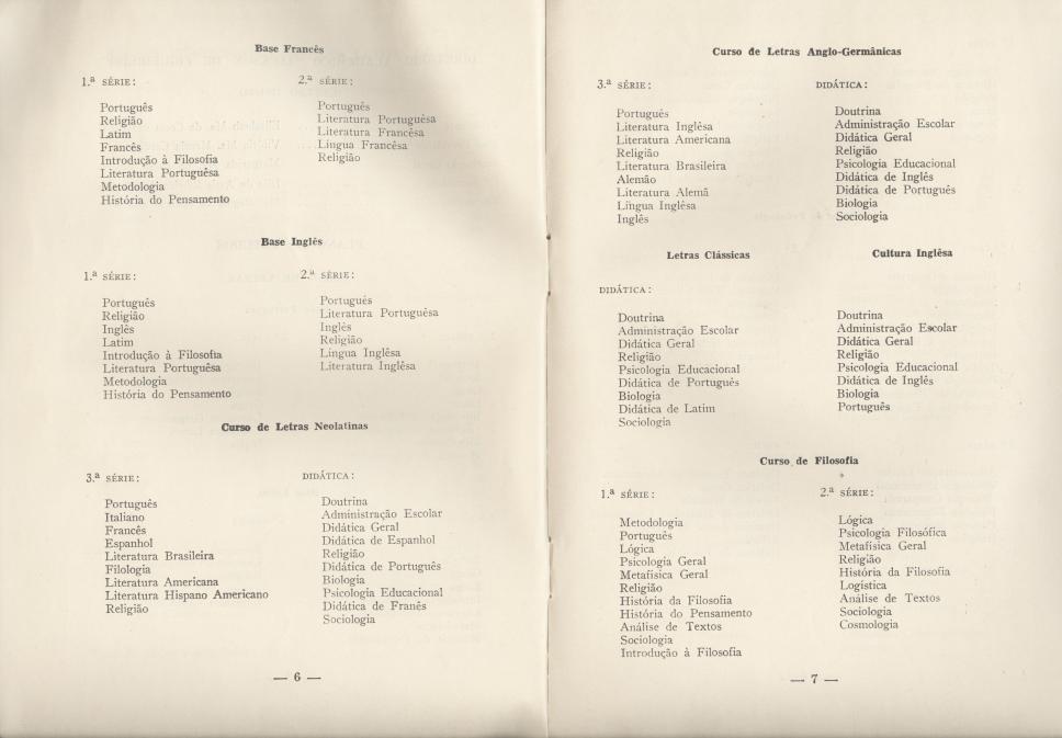 O "Guia para ingresso na Faculdade de Filosofia" apresenta grades curriculares dos cursos de Letras e Filosofia.