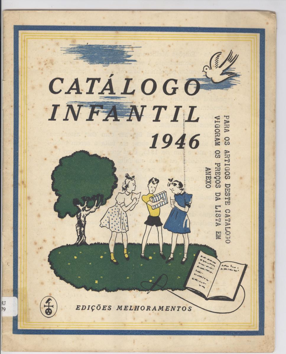 Capa do Catálogo Infantil 1946, Edições Melhoramentos. Ilustração com crianças num campo.