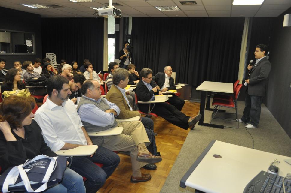 Pedro Corrêa de Brito, do centro acadêmico do Instituto de Relações Internacionais apresenta o evento.