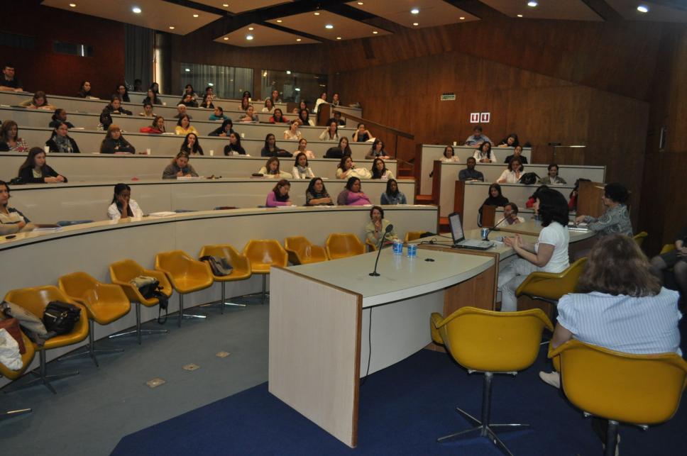 Ouvintes e palestrantes durante o seminário "As muitas faces da creche".