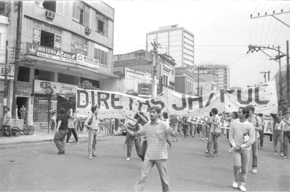 Passeata em apoio à campanha das Diretas Já ocupa a rua Marquês de São Vicente, na Gávea.