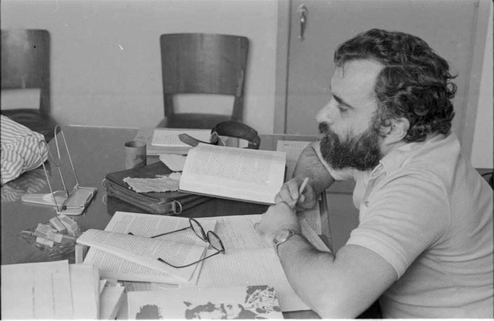 O diretor do Departamento de Filosofia da PUC-Rio trabalha em sua sala.