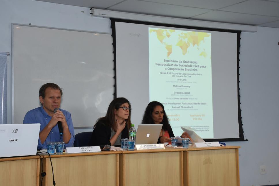 Da esq. para dir.: prof. Paolo de Renzio, Melissa Pomeroy (Centro de Estudos e Articulação da Cooperação Sul-Sul) e a profa. Iara Leite (UFSC)