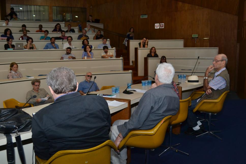 No lado direito da mesa: prof. Luiz Werneck Vianna; na primeira fila da esq. para dir.: prof. Marcelo Burgos, prof. Roberto DaMatta; na quarta fila da esq. para dir.: 4º Valter Sinder e 6º prof. Marcelo Jasmin