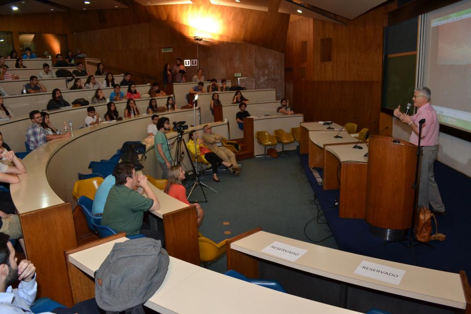 Palestrante com microfone: Mauro Annunziato (diretor da Agência Nacional da Itália para Novas Tecnologias, Energia e Desenvolvimento Econômico Sustentável)