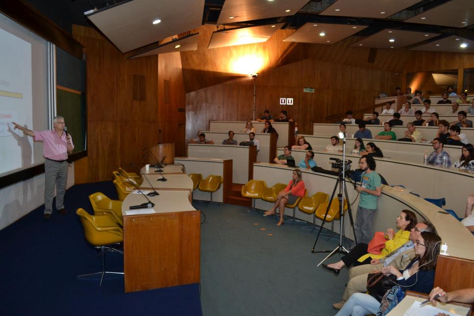 Palestrante com microfone: Mauro Annunziato (diretor da Agência Nacional da Itália para Novas Tecnologias, Energia e Desenvolvimento Econômico Sustentável)
